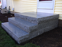 Steps enhance the beauty of a home’s front or back yard landscape. In residential front yards where steps may be connected to an entryway, we recommend laying granite as the step treads to eliminate the potential of water damage and heaving. This ensures a safe, even surface for year round use.