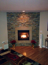 On interior projects where Stone Veneer will be laid over drywall, the surface is prepped with wire mesh and mortar to provide a suitable mounting surface. On block or brick, a healthy layer of mortar is used to add the layer of cut veneer stone directly to the surface. Interior Stone Veneer projects can have a dry stack look or a mortared look depending on your preference.